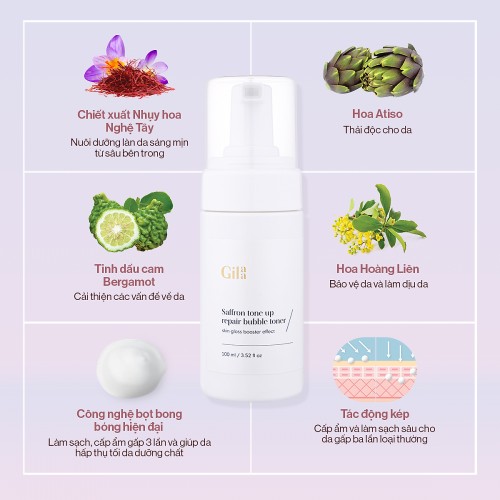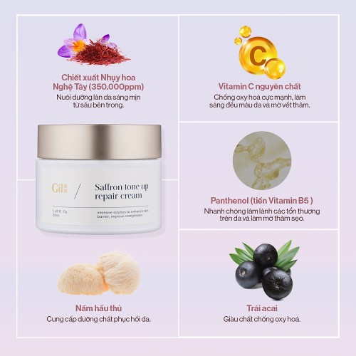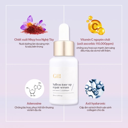 Bộ 4 sản phẩm dưỡng trắng da Gilaa Saffron Tone Up Repair [tin mẫu]