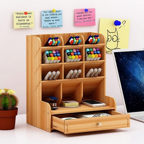 Sản phẩm Kệ giá gỗ đựng đồ dùng học tập và văn phòng phẩm đa năng phù hợp sử dụng trong nhiều không gian: Bàn làm việc, bàn học, quầy thu ngân, văn phò Không tốn diện tích như những sản phẩm Kệ gỗ cùng loại khác, sản phẩm có kích thước nhỏ gọn, chia nhiều ngăn thích hợp với những văn phòng, phòng học có không gian nhỏ, chật hẹp không thể bày được kệ ngăn kéo lớn.