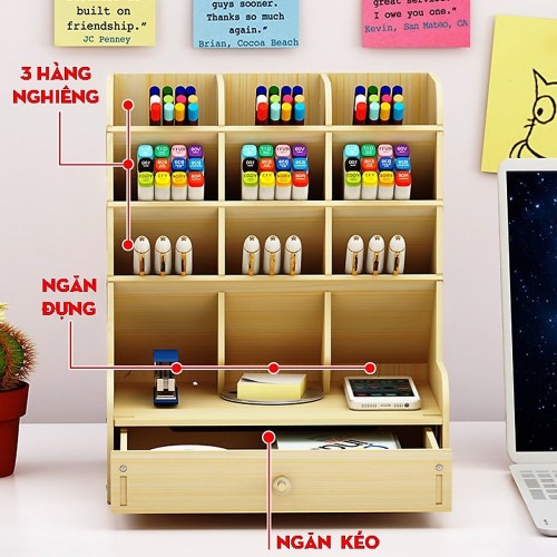 Sản phẩm được thiết kế chuyên dụng để đựng văn phòng phẩm, đồ dùng học tập như: Bút thước, bộ màu vẽ, con dấu, bấm Được chia nhiều ngăn riêng biệt giúp bạn có thể dễ dàng chia cất giữ đồ đạc để tiện khi sử dụng mà không mất nhiều công tìm kiếm như trước. Đặc biệt có thể sử dụng ở các lớp học vẽ, trang điểm, hóa trang để phân loại các bảng màu, đồ make up, đồ phụ kiện nhỏ dễ thất lạ Sản phẩm bằng chất liệu gỗ ép, bền chắc dễ lắp ghép có 3 màu sắc cho bạn lựa chọn theo sở thích: đen - kem - nâu gỗ.